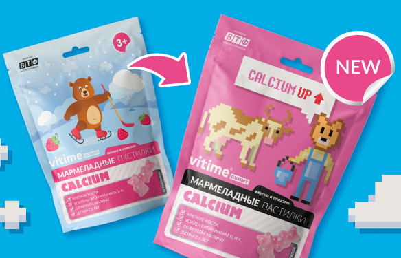 Постепенно все продукты линейки VITime Gummy получат новый дизайн. Первым продуктом стал VITime Gummy Calcium. Теперь он тоже выпускается в обновленной упаковке. Состав и действие продукта не изменились.
